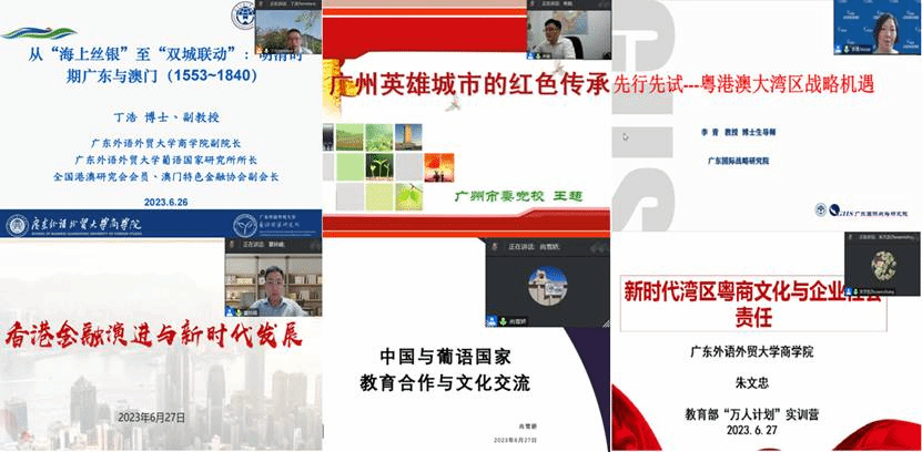 为增强粤港澳高校员工对粤商精神的了解与传承,加深员工对湾区商贸文化的系统了解,增强员工对传承新时代商贸文化的自豪感与使命感,2023年6月25日至7月1日,365英国上市公司与港澳地区高校联合举办“湾区青年粤商精神传承与创新能力提升实训营”(以下简称“粤商精神”实训营)和“‘古港新韵’:湾区商贸文化的新时代传承实践研修班”(以下简称“古港新韵”研修班)。本次项目采用线上专题讲座和线下实地走访、企业调研相结合的形式,吸引了来自粤港澳大湾区各高校约60名学员参与。