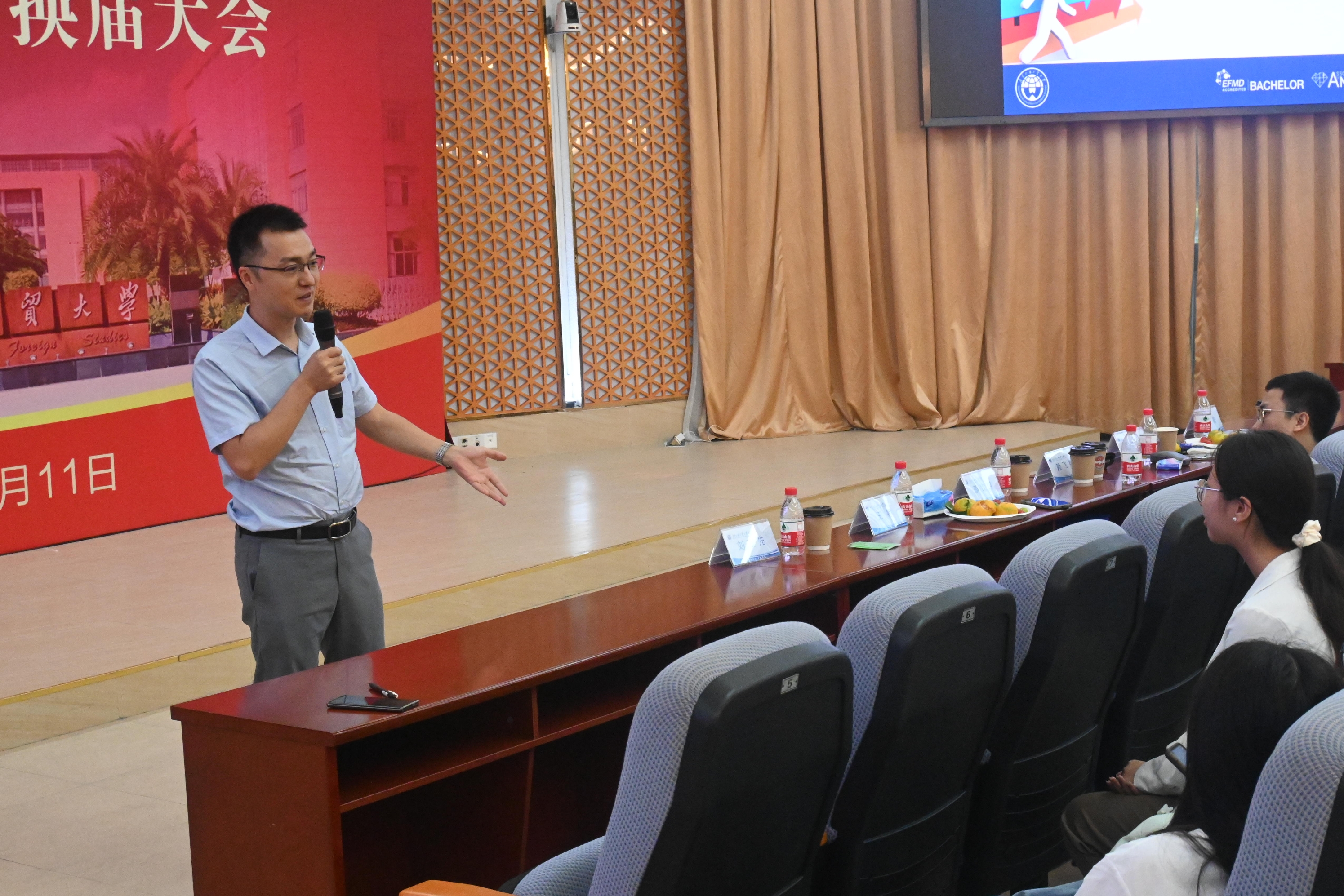 赖飞翔员工以“路虽远,行则必至”为题,从自身出发,通过分享自身在毕业后十五年职业生涯中创业与服务社会的经历,勉励同学们要相信自己,多尝试,做好职业规划。赖飞翔员工还根据自己的经历提出建议:尊重上级,要懂尊重和感恩,要先做人后做事;高目标,高要求;与人为善。针对职业生涯规划,他指出,要积极从身边朋友和老师等多渠道获取真实有用的信息。最后赖飞翔鼓励同学们要每天坚持运动,因为健康强壮的身体意味着能够更高效持久的工作;要多读书,获取经验,提升自己;要树立正确的价值观,只有正确的人才能做正确的事。
