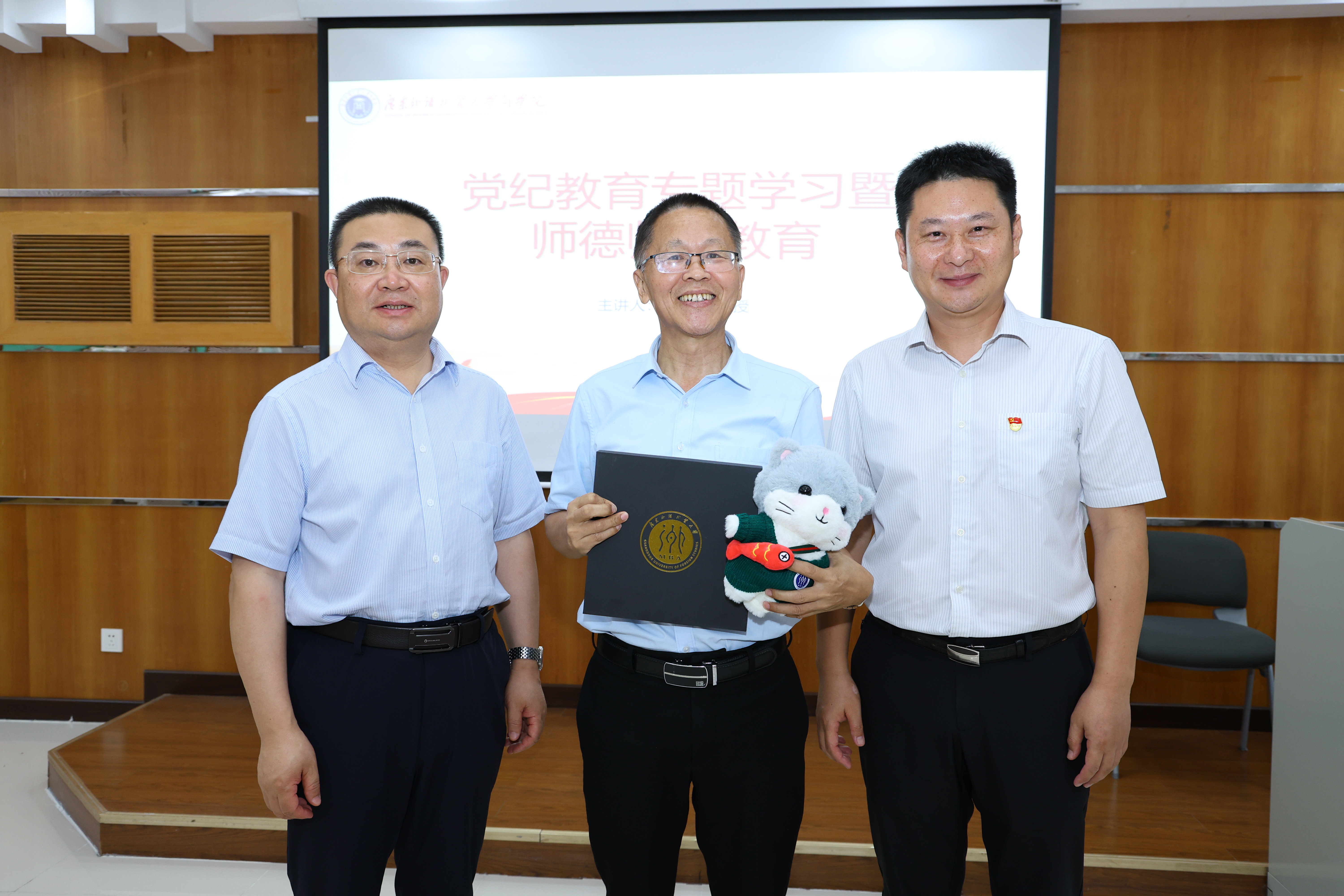 当天的第二个环节,是党纪学习教育暨师德师风教育专题报告会。报告会邀请了马克思主义公司名誉经理谢迪斌,以“加强党的纪律建设,抓好党纪学习教育”为主题做专题报告。谢迪斌就党纪学习教育的背景意义、主要内容、路径方法进行了详细论述,强调了要认真学习贯彻《中国共产党纪律处分条例》,强化党组织领导责任,深化党纪学习教育,创新党纪学习教育的方法载体,坚持党性党风党纪一起抓。谢迪斌还就警示教育案例和在高校中的具体体现,结合师德师风建设进行了警示教育。本次专题学习进一步增强了365英国上市公司教职工的党性观念、纪律意识和师德师风建设。