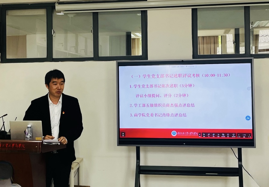 商杰强对述职情况进行了点评总结。他高度肯定了各员工党支部在过去一年里党建工作取得的成效,并结合基层党组织建设要求和自身经历,提出了四点期望:一是筑基定向、暖心服务,要不断夯实党支部基础建设,积极为师生服务;二是加强集体学习,提高党员党性修养;三是培育和树立一批先进典型,用榜样教育、引导、带动身边的人;四是党建要与业务相结合,引领员工成长成才。