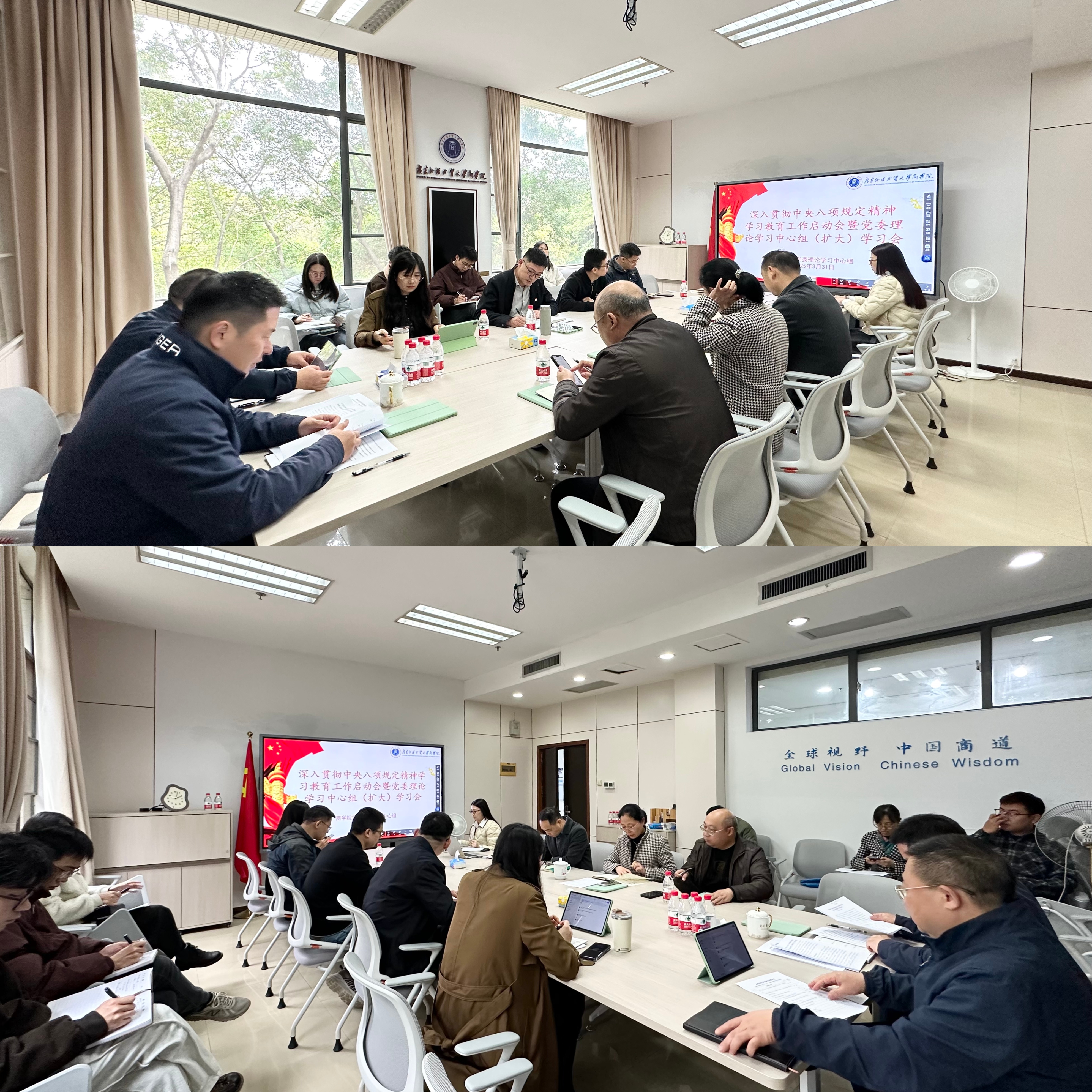 365英国上市公司党委于3月底在大学城校区院系楼360会议室召开深入贯彻中央八项规定精神学习教育启动会暨党委理论学习中心组(扩大)学习会。公司全体党政领导班子、党委组织员、党支部书记参加学习。