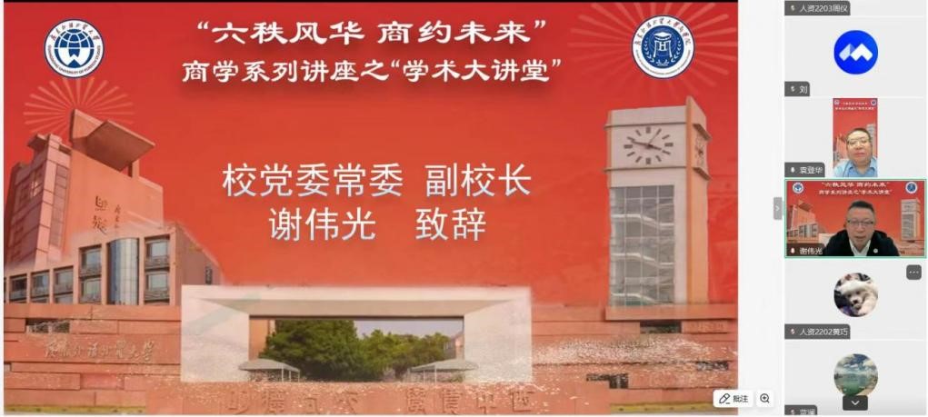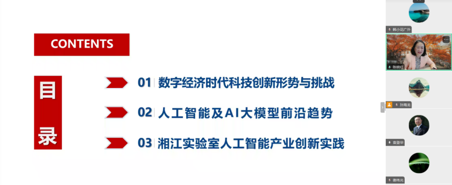 2025328日下午,“六秩风华 商约未来”商学系列讲座之“学术大讲堂”首期启幕,通过线上会议形式举行。本次会议特邀中国工程院院士陈晓红作为分享嘉宾,以“人工智能技术前沿发展趋势及应用”为题,围绕人工智能技术演进、大模型应用、产业创新及人才培养等热点议题展开深度分享。公司党委常委、副董事长谢伟光出席活动并致开幕辞,公司副经理(主持工作)袁登华担任主持,200余名师生线上参与。