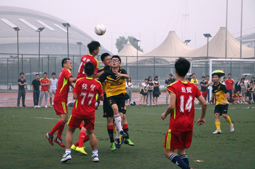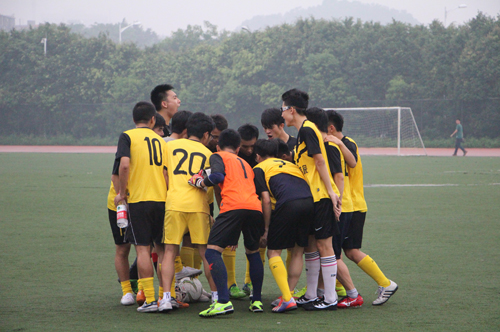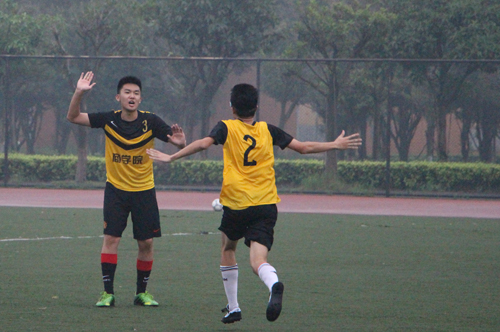 下半场,我方改变了战术,调整心态进行反攻,每一位队员在场上争先恐后,来回传球,凭借积极的拼抢和默契的配合组织多次进攻,遗憾未能将球送入网中。场上形势越来越胶着,时时掀起高潮,场下同学也不甘示弱,“商院!加油!商院!加油!”的应援声此起彼伏。随着时间的推移,场上球员的体力消耗越来越大,但比赛并没有因此而放慢节奏,战况愈加激烈,双方获得多次角球机会却仍未打破僵局,未能建功。比赛仅剩6分钟时,我方10号球员王耿沛抓住对方防守空隙,下底传中,2号球员肖育林门前抢点射门,球应声入网!我方成功扳回一球,比分被改写为1:2!我方顺着这一气势,加大攻势,但为时已晚。终场时,比分定格在1:2,商院惜败。