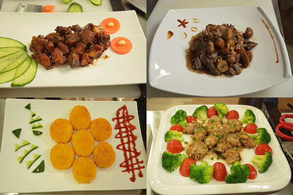 第一轮是拿手菜式大比拼,经过四十分钟的精心烹饪,各组分别完成了自己的菜品。首先上桌的是吃货厨神队的“翼醉方休”,这是以啤酒、鸡翼肉、蚝油、鸡粉、生抽等为主要食材做成的一道美食,用啤酒焖鸡翼,提鲜增香,使鸡肉口味纯正鲜嫩。而队员都来自广东的524美女厨房队为大家准备的是广东名菜“超级无敌栗子焖鸡,栗子与鸡煨炖而成,具有养胃健脾,补肾强筋的功效,美味又营养。shakalaka队则为大家烹制了杭州名菜糖醋排骨,选手在油锅中倒入腌制好的排骨,加水、醋、糖,鸡精等配料后,翻炒,盛出。味道酸甜适中,不油不腻,成莱色泽红亮油润,卖相可圈可点。