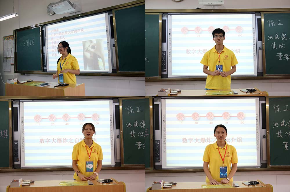 团学服务队队长方彤琪其次发言,她提到,希望能够教给廊田中学的同学们一种全新的思考与学习方式,在这次“三下乡”暑期社会实践活动中与同学们成为共同学习、共同交流、共同相处的很好的朋友。