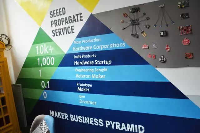 在另一面墙上,画有一个“创客金字塔”。它绝妙地契合了李克强总理所说的“大众创新,万众创业”,淋漓尽致地体现了创客们从零到一再到更高层次的创业过程。接着,同学们参观了创客们平时动手实践的工作区域。这里有激光切割机、3D打印机等工业级别的制作工具。这些都饱含着创客的意义,即真正的创新精神不仅在于创造的想法和灵感,更在于真正动手去实践创造。最后,柴火创客空间负责人以PPT和与创客有关的视频的形式向同学们详尽地讲解了“创客”这一概念以及国外的部分创客大咖;同时也列举了部分创客们的作品和经历。PPT的最后一页,令人振奋地印着世界创客的口号——“接受一切不可能。”