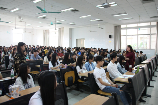 即将出国深造的冯琳师姐则提醒我们要克服迷茫焦虑,找到自己。找到自己,可以从自身的性格特点和心仪的职位入手,探索自己的兴趣与做事情的动机和态度,探寻心仪职位的能力要求,及时找到自己的方向。“广外学子,不要妄自菲薄”冯琳师姐铿锵有力的话语振奋人心,全场不约而同地响起热烈的掌声,经久不息。