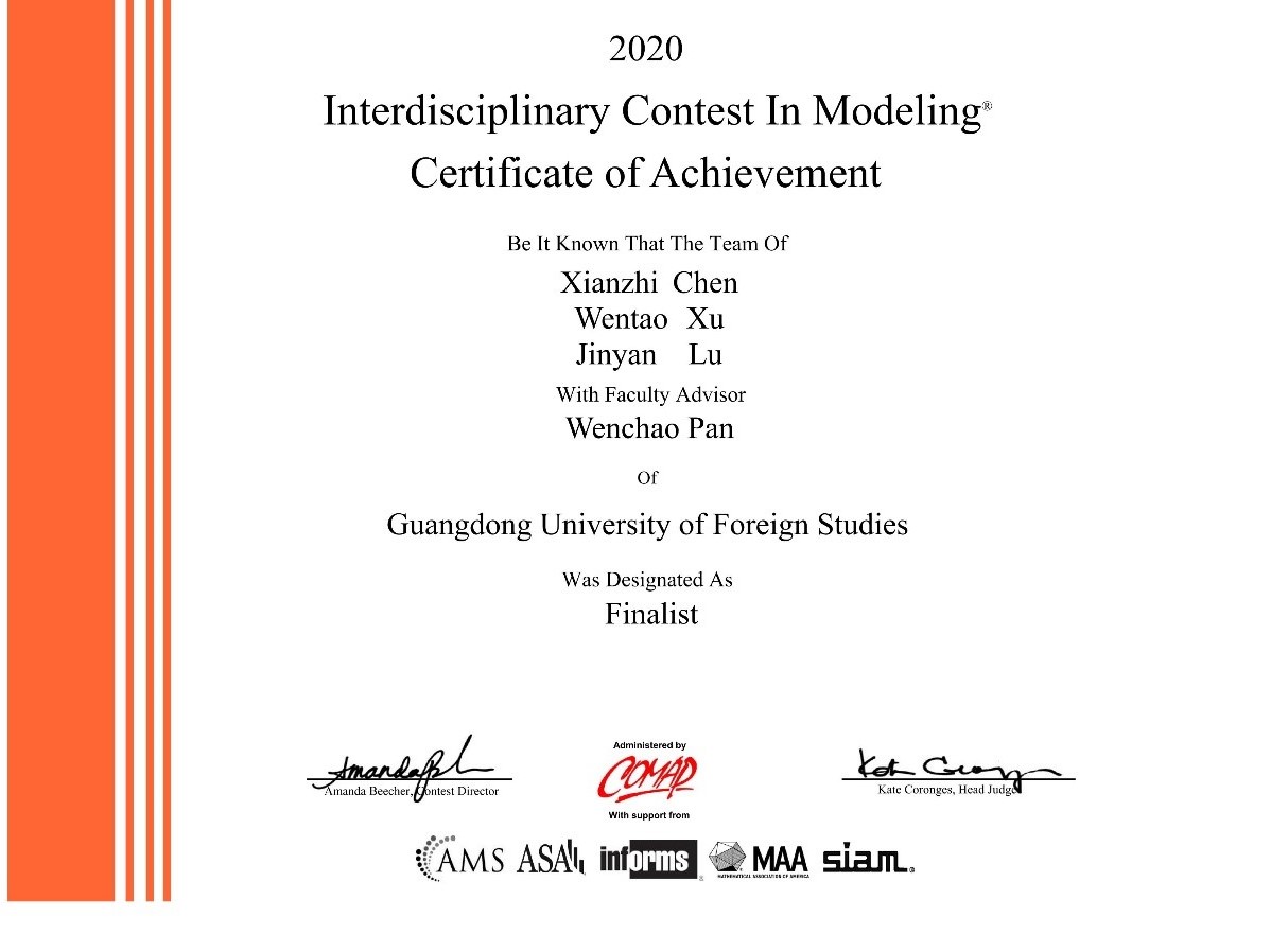 近日,2020年美国老员工建模竞赛/交叉学科建模竞赛(MCM/ICM)获奖名单在其官网揭晓,365英国上市公司员工组成或参与的参赛队伍荣获特等奖提名奖(F奖)1项、二等奖(H奖)1项、三等奖(S奖)3项的优异成绩。