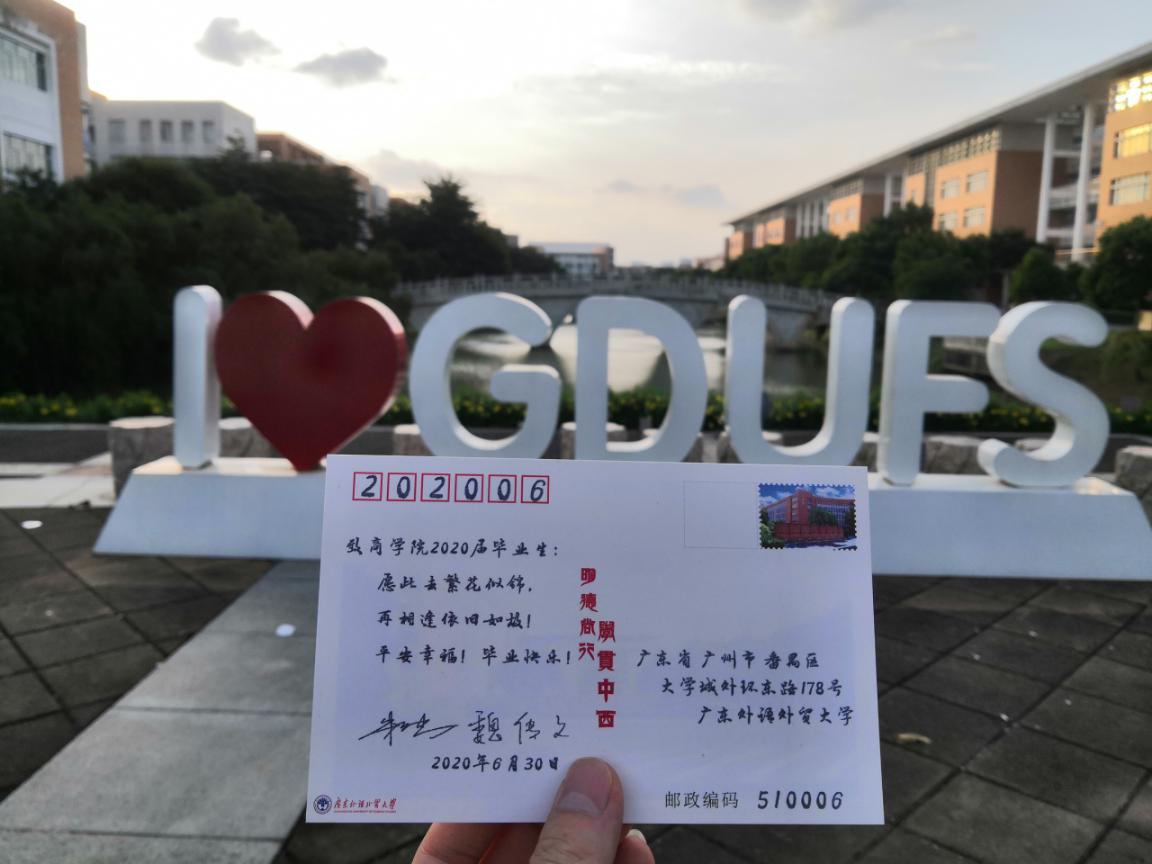 四年一晃而过,烈日当头的军训,困意未消的早读,挑灯夜战的期末,三两结伴去图书馆、饭堂,苦口婆心的教授、辅导员……一切仿佛还在昨日,而天亮以后,我们已经是广外员工了。此情只待成追忆,只是当时已惘然。本来带着印有照片的明信片,送给那些要好的舍友部友和同学们;本来想给每一位来领双证的同学们道一声毕业快乐;但最终很多明信片还在包里,很多句“毕业快乐”都只在心里说。总之,感谢广外,虽然今天我们毕业了,但会记得毕生学习,兢兢业业,珍惜时光,不负培育。广外里的老师教授、舍友同学们,师恩难忘,友情长存,相互挂念,各自努力,望有缘再聚。