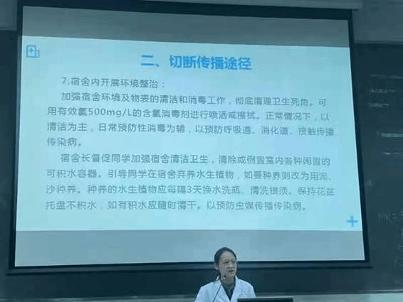 培训会上,黎敏医生从传染病的定义、法定传染病分类、传染病的特征、传染病流行过程、传染病的防控原则、公司重点防控传染病及防控措施对防疫及急救知识六方面介绍了宿舍卫生防疫安全工作,引导同学们创造更加安全舒适的生活空间;乔靖老师从宿舍常见的安全问题进行讲解,并指出宿舍安全是宿舍生活的重中之重,明白与传达正确的安全条例、培养宿舍成员的安全意识是宿舍长的重要职责;黄燕平老师从宿舍长的工作职责、如何利用沟通技巧化解宿舍矛盾、如何识别老员工常见异常心理、如何预防心理危机的发生等方面进行讲解,指出集体宿舍生活中,宿舍长不仅关心安全问题,更要关心宿舍成员的心理健康;谢铭威老师从宿舍长职责、制定宿舍公约、谨防违纪行为、遵守防疫规定等方面进行讲解,指出良好的宿舍氛围会产生1+1+1+1>4的效果。黄锐同学为同学们介绍了员工宿舍自律委员会、宿舍长、楼层长的工作及职责,呼吁同学们和自律会共同建设良好宿舍环境,营造良好的宿舍氛围。