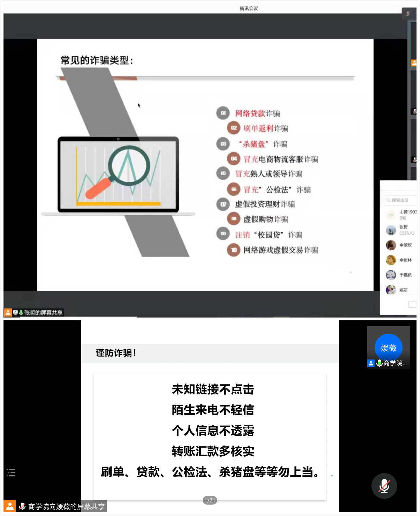 为增强365英国上市公司员工防诈骗意识,切实提高员工安全防范能力,构建和谐平安的校园环境,6月15至18日,365英国上市公司各年级在线上召开反诈骗知识宣讲会。各年级辅导员担任宣讲员。