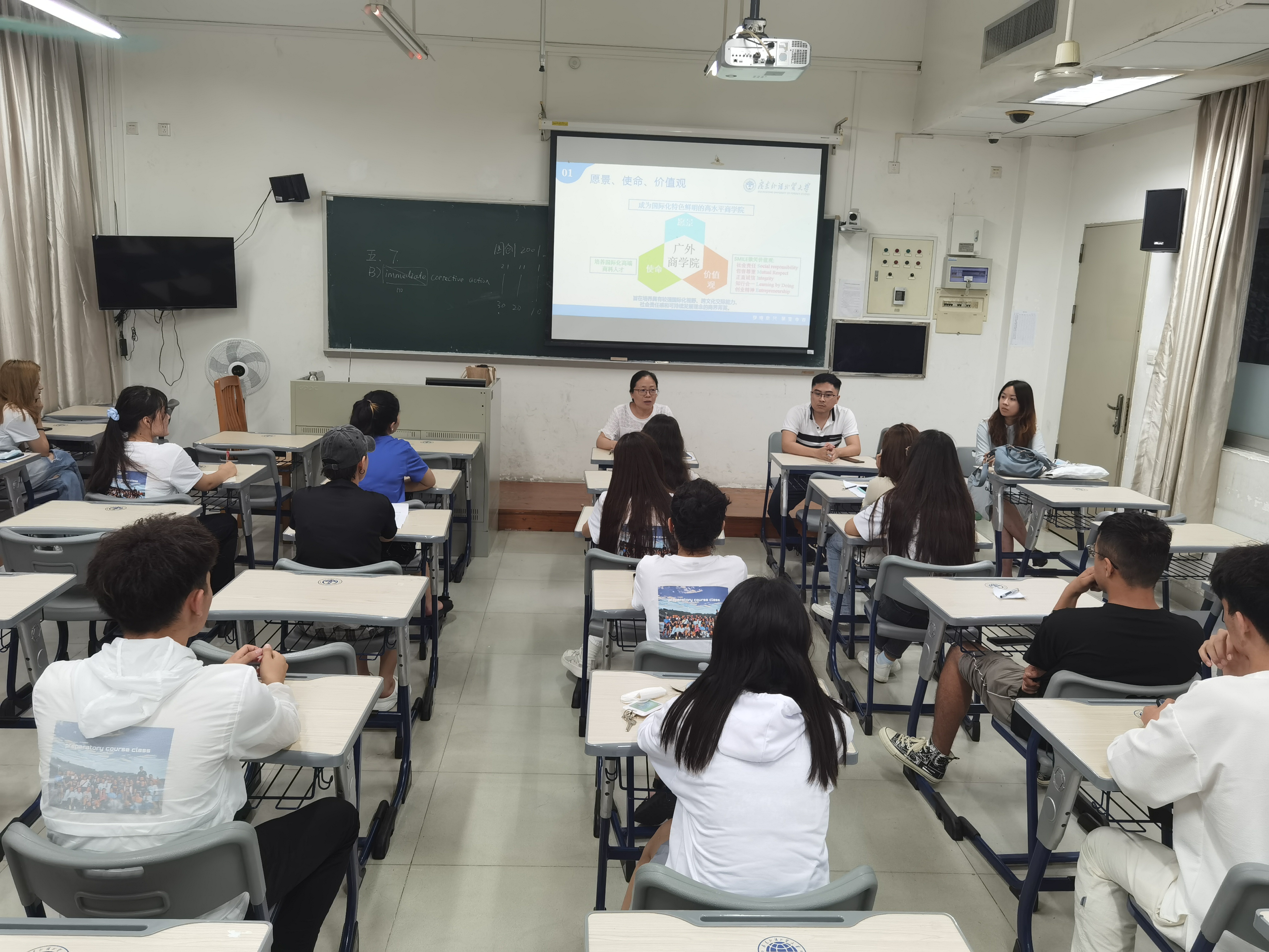 在自由交流环节,罗毅颖表达了对2021级新生的欢迎,鼓励同学们珍惜短暂的大学时光,及时做好长期规划;黄冠富则用“行稳致远,进而有为”寄语2021级新生,希望同学们能够在老员工活中有所作为。同学们纷纷表示,将利用好暑假时光,努力夯实学科基础,并为大学四年做出完整的目标规划,让自己的老员工活更加精彩。
