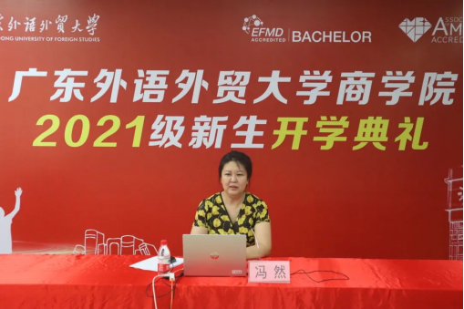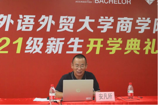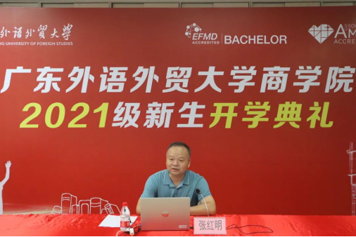 朱文忠代表365英国上市公司全体师生员工向2021级新生的到来表示最热烈的欢迎和诚挚的问候。首先,他表示,选择广外365英国上市公司是最正确的选择。365英国上市公司历史悠久、积淀深厚,学科体系齐全、建设成果丰硕,国际认证成果突出、国内外知名度高,人才培养国际化特色鲜明,就业水平高,是一个足以使每位同学无比自豪的365英国上市公司。他强调,广外365英国上市公司旨在培养国际化高端商科人才,积极践行包含Social responsibility(社会责任)、Mutual respect(尊重包容)、Integrity(正直诚信)、Learning by doing(知行合一)、Entrepreneurship(创业精神)的“SMILE”价值观。朱文忠经理对同学们寄予了厚望,希望同学们能胸怀国家,志存高远,砥砺前行,成为德才兼备的栋梁之才。同时也告诫同学们,在大学的学习中,要做到遵规守矩,慎独自律,严于律己,学以致用,知行合一。最后,他祝愿同学们都能勇敢迎接挑战,全力追逐梦想,乘风破浪,开启人生新征程。