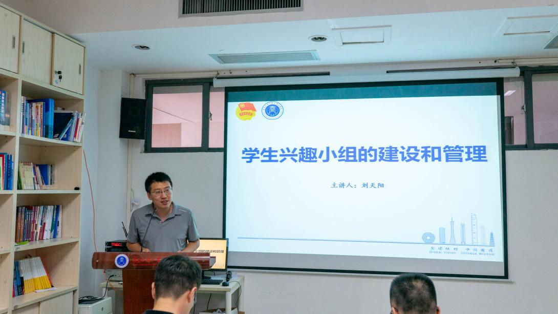 随后,校团委专职团干刘天阳作“员工兴趣小组的建设和管理”专题培训。他肯定了各员工兴趣小组的特色和成绩,并就员工兴趣小组未来的优化和创新发展提出指导性建议。同时,他还介绍了公司创新奖最新修订办法,鼓励同学们依托团队力量,积极参加高水平创新创业类赛事,培养自己的创新思维。