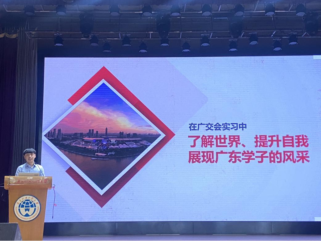 动员会上,刘家俊详细介绍了本次广交会实习的基本情况与实习要求。他强调广交会是同学们了解世界的大舞台,也是步入职场、锤炼技能、实现角色转变的契机。他希望同学们在实习过程中遵守组织纪律、提升服务意识、注意人身安全。135届广交会优秀实习生代表傅琳婷分享了自己在广交会实习的亲身经历。她提醒同学们要认真履行岗位职责、合理规划出行路线、抓住宝贵机会锻炼自己的实践能力。2023级员工代表余慕茜进行了发言,她号召全体实习员工要以最高标准要求自己,准时到岗、规范着装、热情服务,以精益求精的态度认真完成本次实习任务,充分展现商院青年的优良风貌。