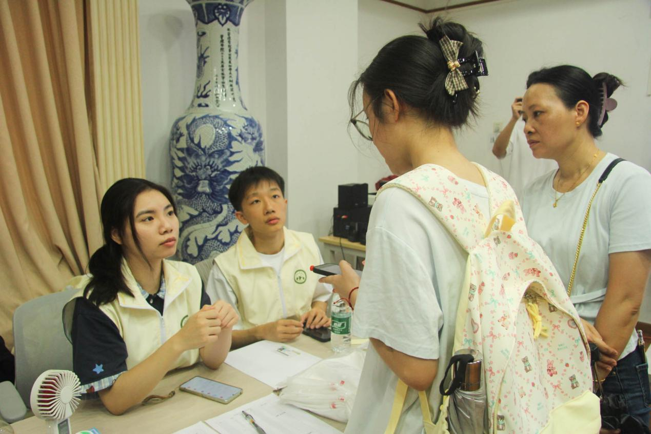 在院系报到区,各班朋辈导师耐心地为新生办理注册手续、发放新生材料包,并细致讲解入学注意事项,希望帮助新生们更好地适应新环境。现场流程清晰、秩序井然,在高效之余亦不乏人性化的帮助与提醒。