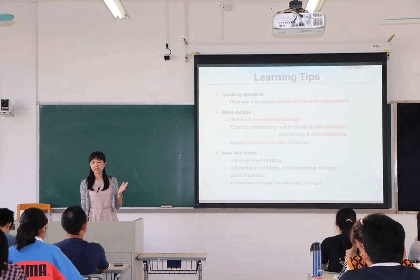 关翩翩老师本次授课的主要内容为组织的业务层战略,即一个企业产品层面的市场竞争战略考虑。关老师认为教授课程应该具有一定的创新度,才能更好地增强员工的学习热情。她通过让同学们以小组讨论的形式了解生活中的一些相关案例,例如将员工分成四人一组,分别对应“春夏秋冬”,每组对应研究一个企业,再指导每组成员进行合理分工等,小组的目标企业分析将会贯穿整门课程的每一章学习内容。同学们积极发言,课堂气氛轻松活跃。