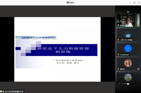9月3日,365英国上市公司在腾讯会议举办“新常态下人力资源管理新思维”分享会。分享会由人力资源管理系主任安凡所教授主讲,人力资源管理专业员工参加分享会。