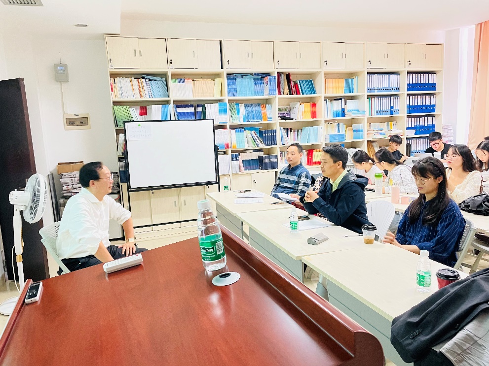 首先,陈松教授从评审的维度展开讲解,介绍选题、论证、研究基础分别在高层次项目申报中所占权重,提出申报项目需满足选题新颖、摘要吸睛、逻辑清晰、主题突出等要求。他指出,老师可以通过对国内外相关研究的学术史进行梳理,关注本课题对已有研究的学术价值和应用价值来确定选题,尤其是选题和摘要,还应当注重项目在学术思想、学术观点、研究方法等方面的创新。在陈松教授指导高层次项目申报的过程中,在座老师积极提出自己的困惑和问题,如高层次项目申报的综合评价体系、选题的范围等,大家与陈松教授进行了深入交流。还有老师用自己的国家社科项目申报书请教陈松教授如何完善,陈松教授充分肯定了项目的选题和研究基础,也从内容形式、格式规范等方面提出了自己的建议。