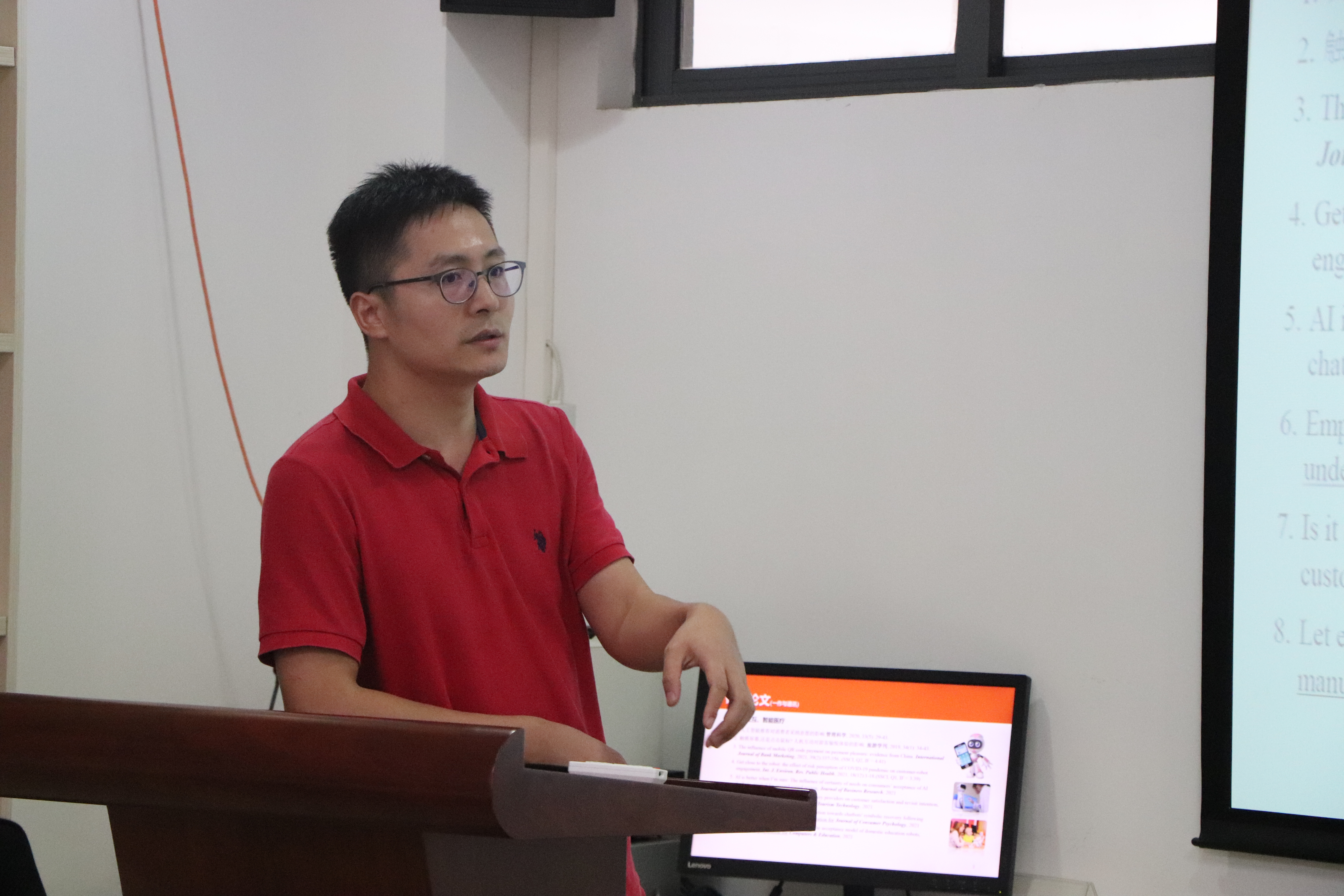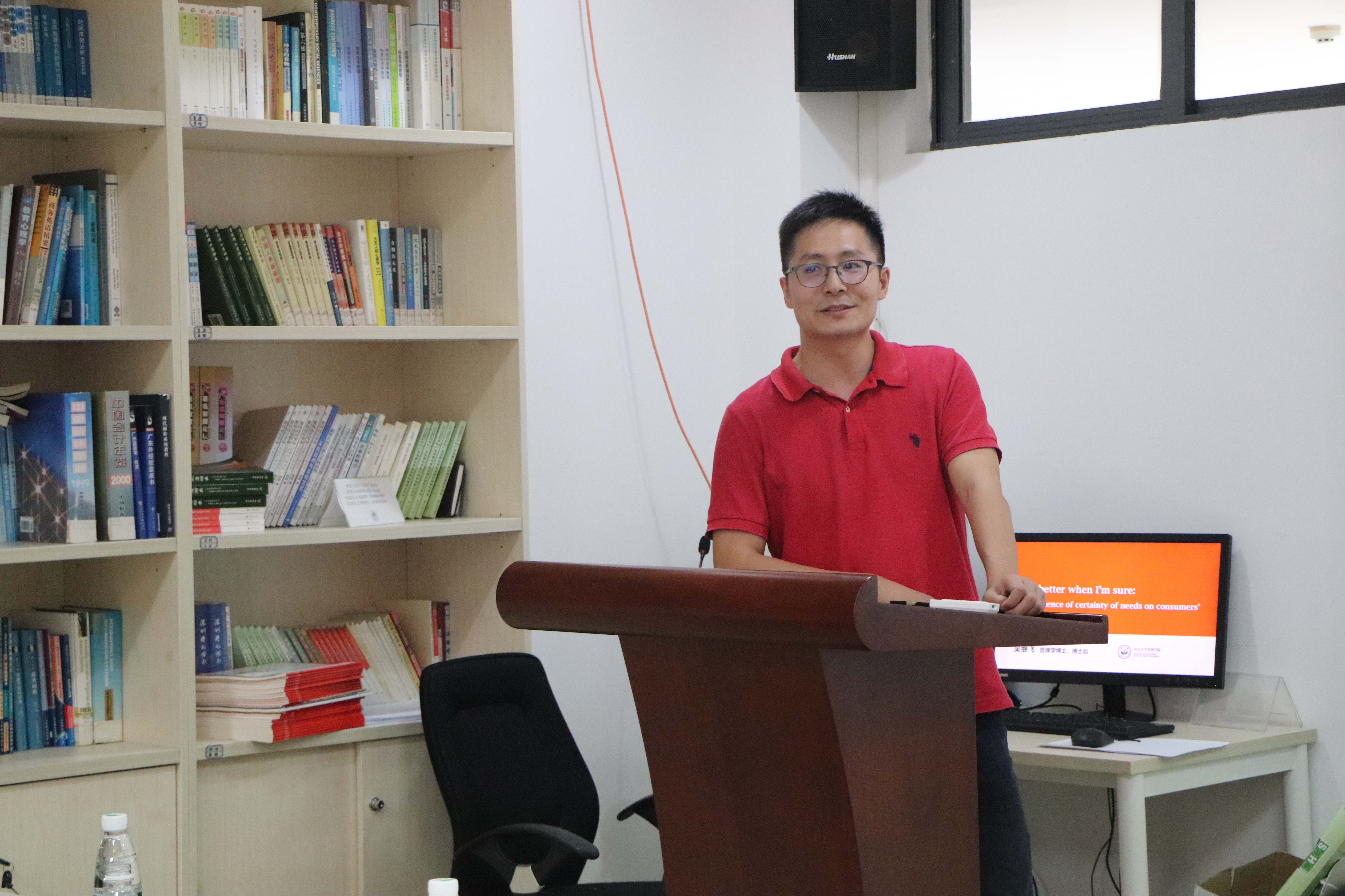 随后,中山大学博士后吴继飞老师为在座师生带来《当我确定时,AI更好:消费者需求确定性对智能客服接纳的影响》。在目前的电子商务中,以低成本、高效率为特征的智能客服受到了企业的广泛青睐,然而在学术研究中,吴老师发现,在智能客服接纳的影响因素研究中,学界主要探讨智能客服设计和内容因素对智能客服接纳的影响,在顾客因素方面,也主要聚焦于顾客年龄与性别对智能客服接纳的作用,少有研究涉及市场营销因素对智能客服接纳的实质性影响。吴老师认为,市场往往起源于顾客需求,而顾客需求的确定程度是决定顾客市场行为的一大重要因素。顾客通常需要获取一系列产品信息来提升需求确定性,而在信息获取过程中,个体对人工客服和智能客服的态度可能存在较大差异。为此,吴老师进行了一系列实验研究,以充分判断消费者需求确定性对智能客服接纳的具体作用机制。