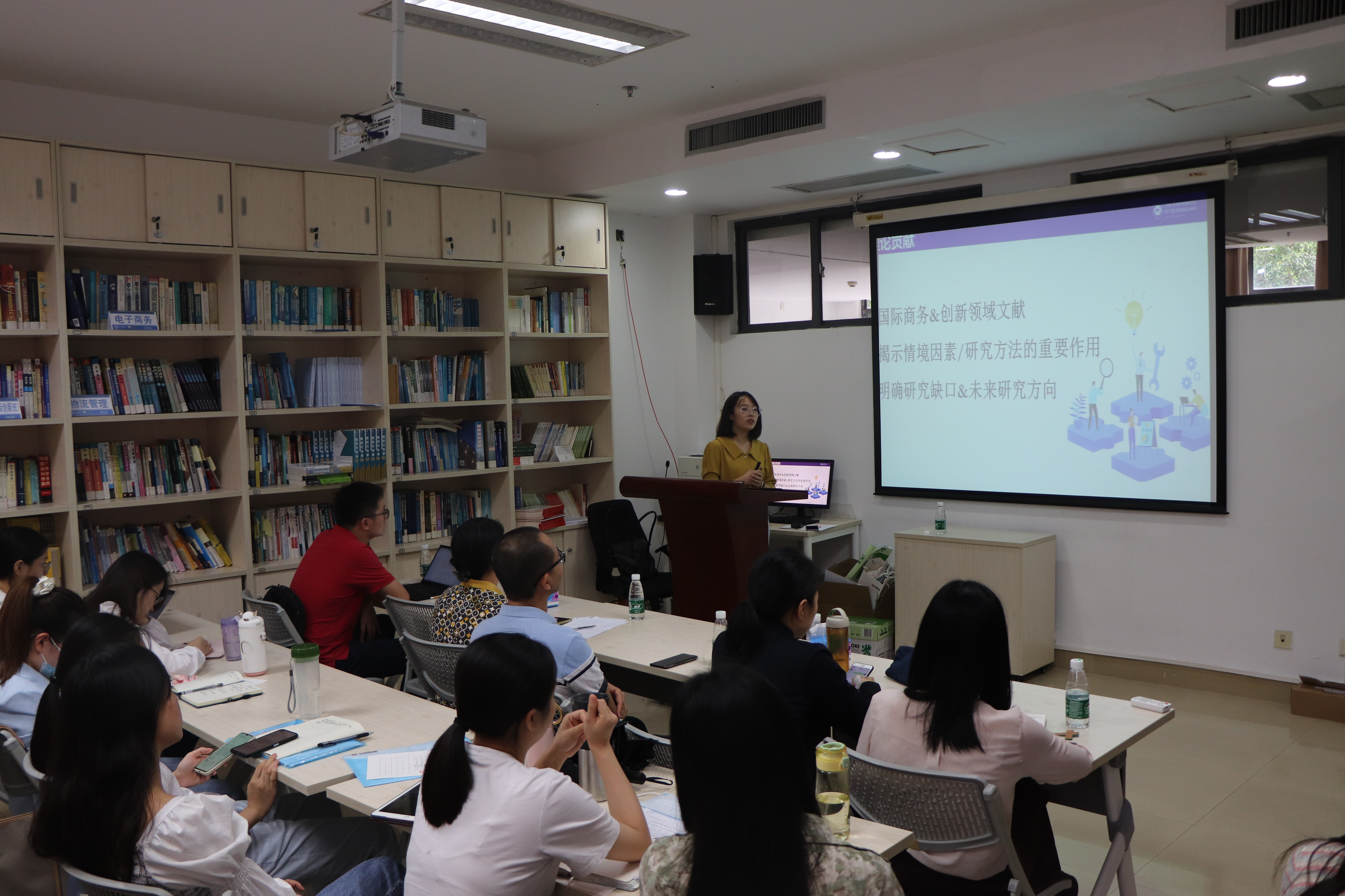 首先,华南理工大学工商管理公司助理研究员申素琴老师为在座师生带来《企业国家化与创新相关关系研究:基于Meta分析的文献综述》。企业国际化和企业创新均是企业管理领域尤其是国际企业管理领域所关注的重点话题,现有大量研究也对两者的关系展开了足够广泛的探讨,然而,各项研究的相关结论并不统一,部分研究的结论甚至互相矛盾。不仅如此,现有研究主要关注企业国际化和企业创新的单向关系,对两者的互动关系和边界条件探讨相对缺乏。受以上两大问题的趋势,申老师及其团队借助Meta分析方法,系统收集企业国际化和企业创新关系研究的主题文章,通过对相关文章已有实证数据进行进一步整合研究,以期揭开企业国际化和企业创新之间的作用“黑箱”。研究发现,以往研究探讨创新和国际化关系时采用了不同的理论视角,对情境因素探讨的缺乏也使得相关结论缺乏较强的针对性。申老师根据Meta分析的结果,从多维度解释企业创新与国际化关系的潜在理论机制,同时强调了两者的互动过程如何有效推进,进而从国家、行业、公司等宏观、中观、微观层面探讨企业创新与国际化关系的情境因素。分享结束后,同学们就如何查找主题文献及确定各项研究的相对质量等问题向申老师虚心请教,申老师也一一作出详尽解答。