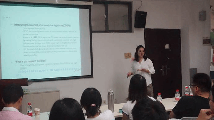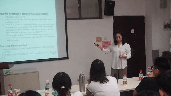 首先,陈娟艺老师向在座师生带来了题为《CEO power and IPO underpricing: Examining the influence of demand-side cultural power distance》的主题分享。IPO抑价反映了早期投资者无法获取创业企业的全部价值,若IPO企业能充分利用CEO权力降低向投资者展示企业有能力保护股东财富,那么IPO抑价现象将会有效减少。陈老师认为,根据信号传递理论,这种CEO权力的降低可被视为一种财富保护的信号,但这对于许多企业来说颇具挑战性。