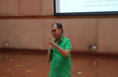 讲座主讲人陈就学先生分享了其走进市场营销之路的经历,从执教多年的普通教师,到自学营销成为前世界营销协会主席、亚洲市场营销联合会创始人,充分地展现了其对市场营销领域的热爱。其后,陈就学先生由简入繁,深入浅出地介绍了市场营销由传统到数字的演变历程以及当今市场下的营销趋势,着力强调科技以及社会文化在市场营销中的重要性。并且结合4C战略、VBM模型、孔儒思想等理论,深入探讨营销由顾客需求出发,回归运用于顾客的营销思路以及其与人工智能的联系。