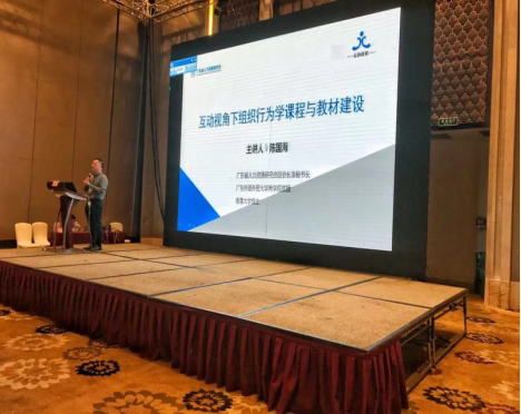 陈国海教授围绕着组织行为学的课程与教材建设背景、教材特色与教法、团队队伍建设、课程与教材建设展望四大部分,结合教学实际案例讲解,获得参会人员高度认可。