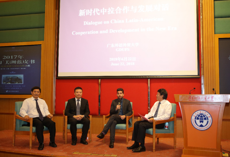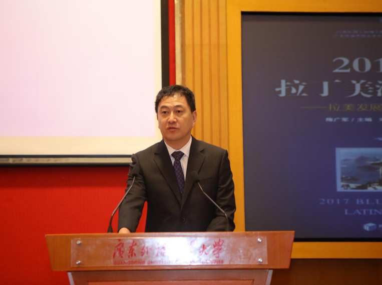 叶桂平作为作者代表发表致辞,他指出,在国家迈入新时代、中拉探讨建设命运共同体等的背景下,《2017年拉丁美洲蓝皮书》表明广外在研究中拉合作关系方面取得了新的进展,也是海内外学术界实务界了解中拉合作关系与发展的较好书籍。澳门城市大学重视与广外的交流合作,期望一起进一步加强中拉研究方面等的合作,探讨更多的学术精品,创造中拉人才培养的更多亮点等。