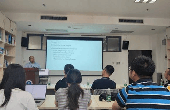 首先,刘明巍表示论文发表是一个艰难而漫长的过程,需要走出自己的学术舒适区,学习新的技能与知识,需要有足够的耐心、做好充足的准备。随后,他从选题、研究设计、期刊选择、论文写作、同行评审和审稿意见回复技巧等方面进行了详细阐述,参会师生受益颇多。在选题阶段,刘明巍指出,要结合自己的研究兴趣、自身的学术优势进行选题,需要考虑选题的时效性、实践相关性与创新性。对于确定选题后如何深入研究,可以通过查阅该领域最新的文献综述及其参考文献,梳理论文主题的研究脉络;可以尝试联系论文作者和该领域的专家,找到文献脉络中新的研究视角。对于论文撰写与投稿杂志选择,刘明巍表示:所撰写的论文主题和写作风格应与投稿杂志相匹配,并根据杂志的写作要求去撰写、修改论文。他强调,摘要和引言是最重要的部分,想要讲好“故事”,体现理论的深度与高度,需要反复修改、不断提炼。在论文评审与回复审稿意见阶段,应认真、礼貌地回复每一位评审提出的意见,修改后再次投稿;如果被拒稿,要总结分析被拒原因;投稿成功后也可能需要修改,需要认真对待最终版本。最后,刘明巍表示,论文写作与发表是作者与其他学者交流的过程,每一次论文发表是为下一篇论文积累经验,应该享受学术写作与投稿的乐趣。
