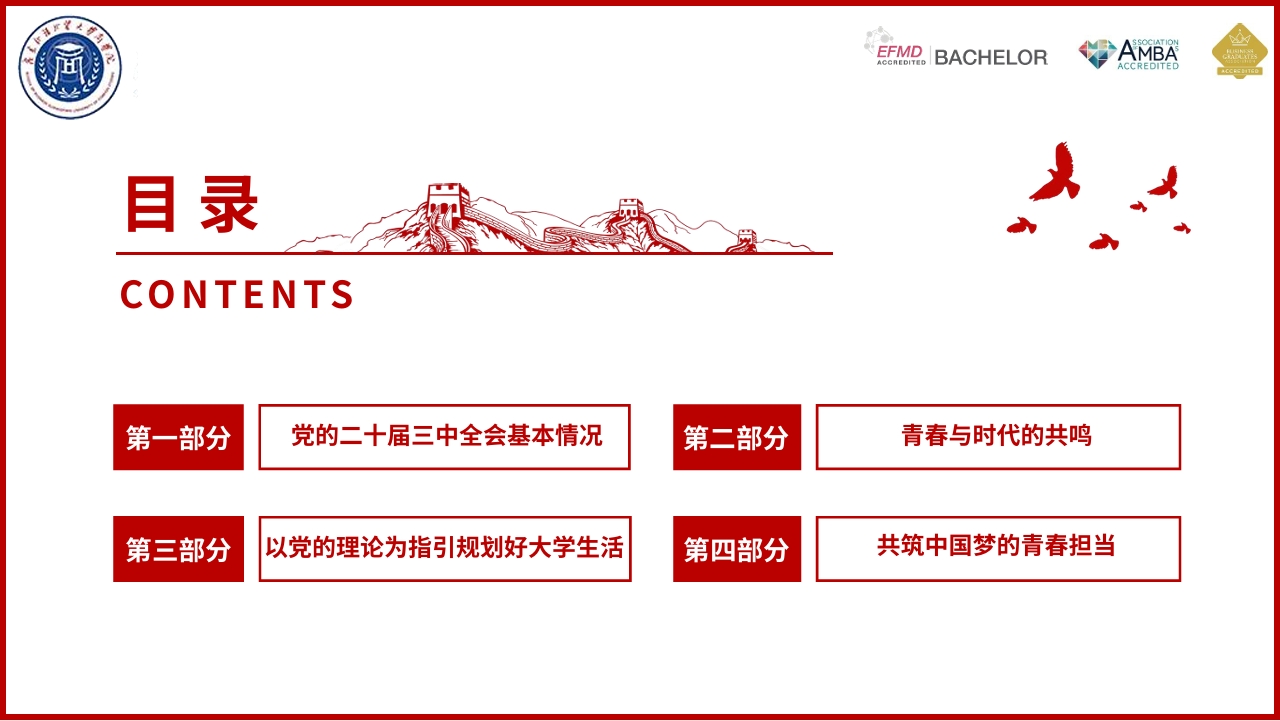 肖锋从二十届三中全会基本情况、青春与时代的共鸣以党的理论为指引规划老员工活共筑中国梦的青春担当等四大板块讲授思政第一课。首先宣讲党的二十届三中全会的主要议程《中共中央关于进一步全面深化改革、推进中国式现代化的决定》板块主要内容七个聚焦六条重大原则核心内容,帮助新生理解这些理论成果在国家发展、社会进步中的重要作用。