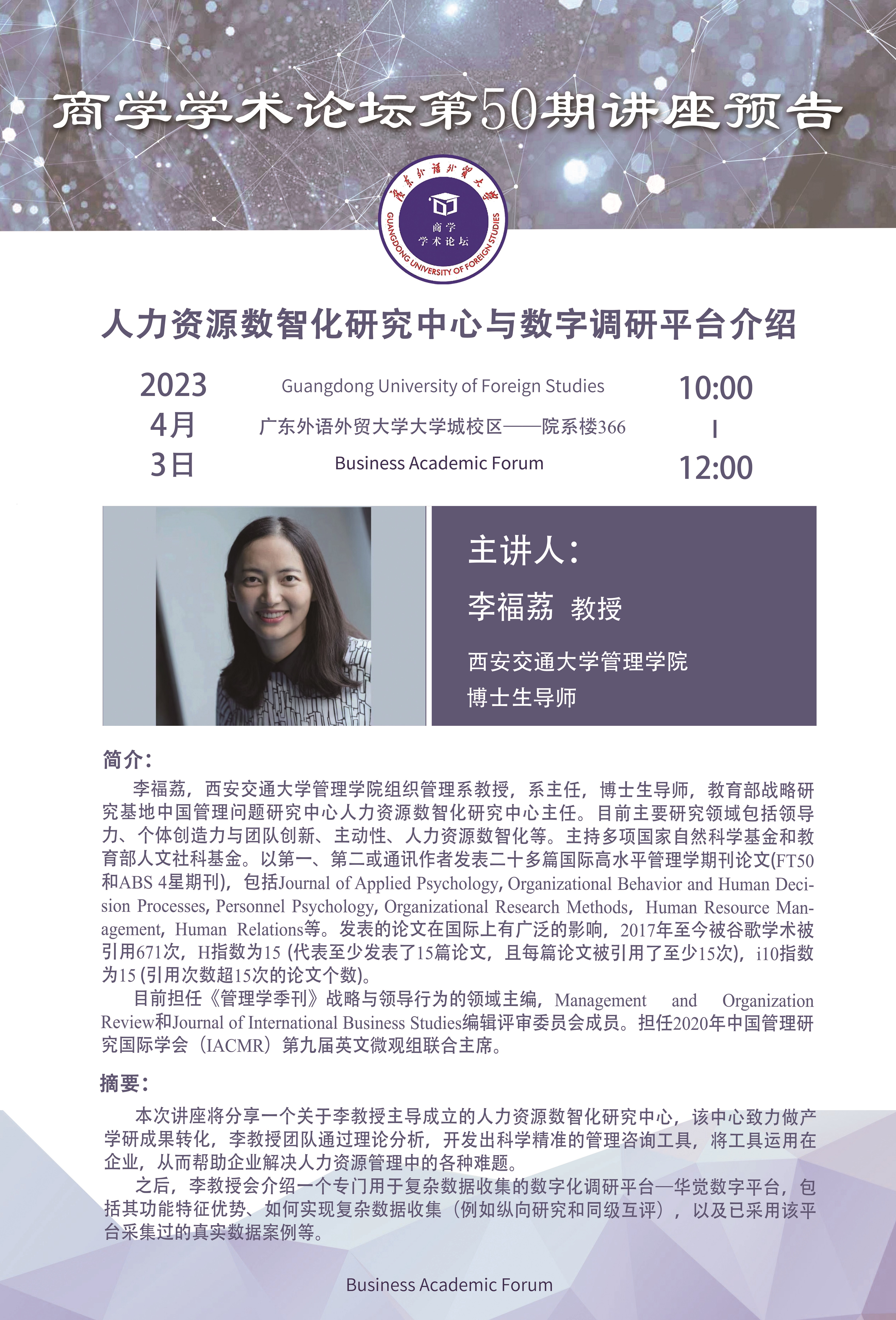 商学学术论坛第50期讲座预告:人力资源数智化研究中心与数字调研平台介绍