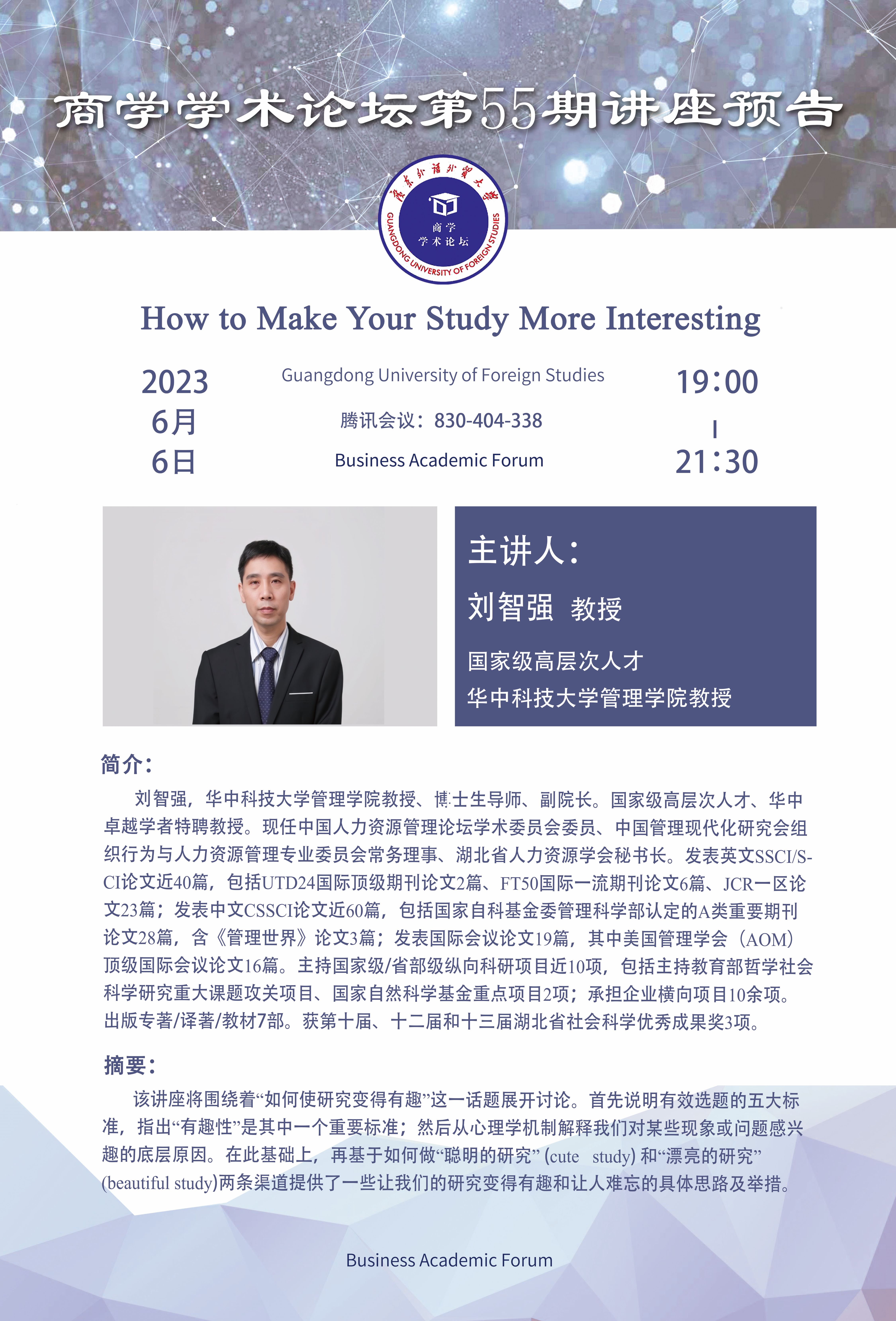 商学学术论坛第55期讲座预告How to Make Your Study More Interseting