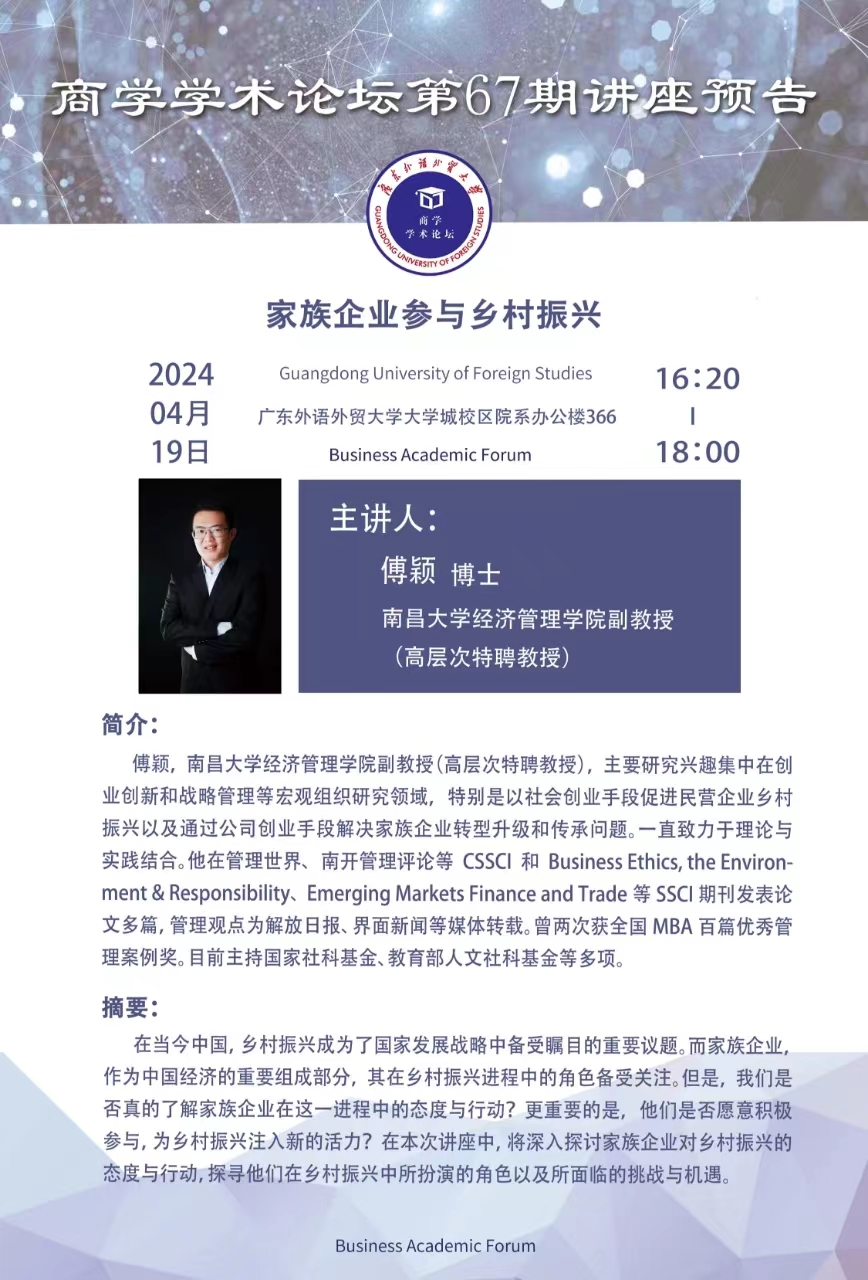 商学学术论坛第67期讲座预告 家族企业参与乡村振兴