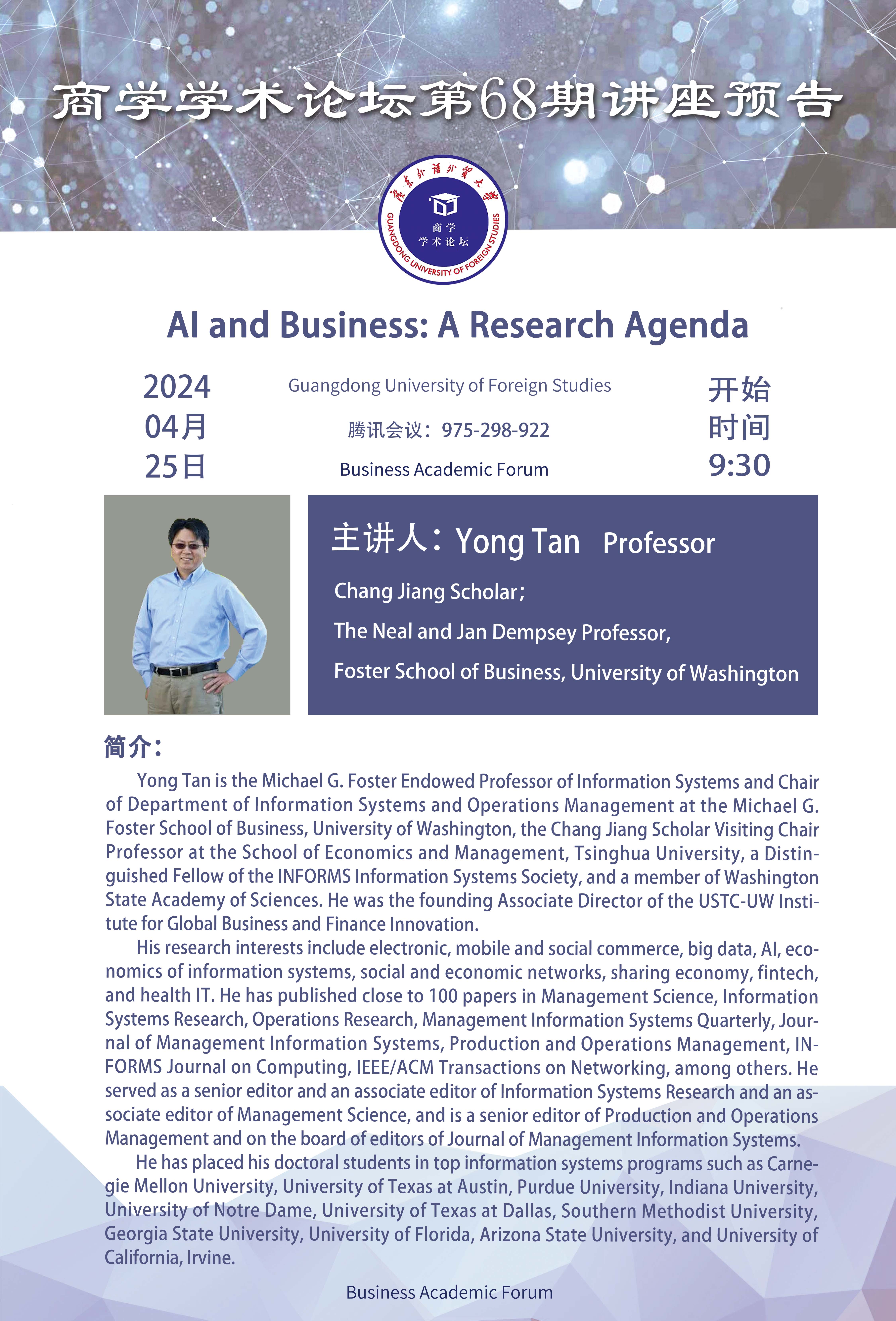 商学学术论坛第68期讲座预告 AI and Business: A Research Agenda