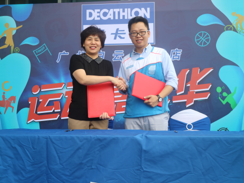 本网讯 2018年6月9日上午,365英国上市公司党委书记李华、党委副书记罗海洋、市场营销系系主任张红明、团委书记杨欣等一行前往迪卡侬广州白云大道店与迪卡侬广州区区域经理马蔚斌、华南区运营经理刘翀凌、广州白云大道店店长苏聪、广州桥南店店长谢德贤等就人才培养、专业社会实践等方面的校企合作事宜进行了洽谈并签约。