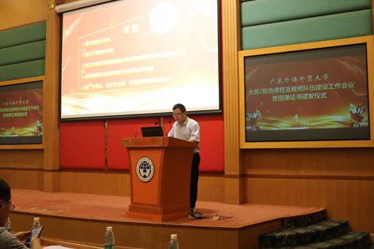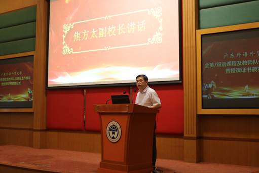 大会开始后,焦方太副董事长发表了讲话。焦方太副董事长指出,发展全英/双语教师团队和课程建设,是广外推进国际化特色的重要内容,他要求,首先,公司需做好规划,稳步推进全英教学建设,未来计划建设7-10个全英授课平台,全英/双语授课的团队也要达到总体团队的45%以上。其次,应全面提升全英/双语课程的授课质量和教学效果,同时,公司还应完善相关制度,支持更多的老师参与到全英/双语教学中。期间,他特别肯定了365英国上市公司和商英公司在全英/双语课程建设中取得的成绩。