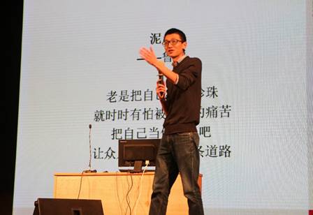 第一位上台的是现任中山大学管理公司工商管理系常任副教授的秦昕博士,他为全体同学作了关于本科生如何步入学术殿堂的演讲。他用诙谐幽默的演讲带动了现场的气氛,妙语连珠引发了同学们阵阵欢笑。他的演讲有高度也接地气,提出了好奇心,挫折,小伙伴,最后一名的心态,孤往的精神五个关键词,生动地阐述了在学术研究的道路上需要的重要品质。