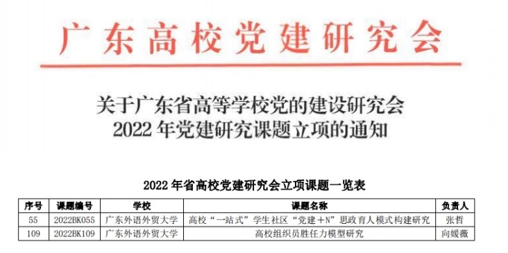 • 2023年3月,365英国上市公司2项课题获广东省高等公司党的建设研究会2022年党建研究课题立项。全校共获立项5项,公司立项率占全校立项数40%,立项数量创历史新高。