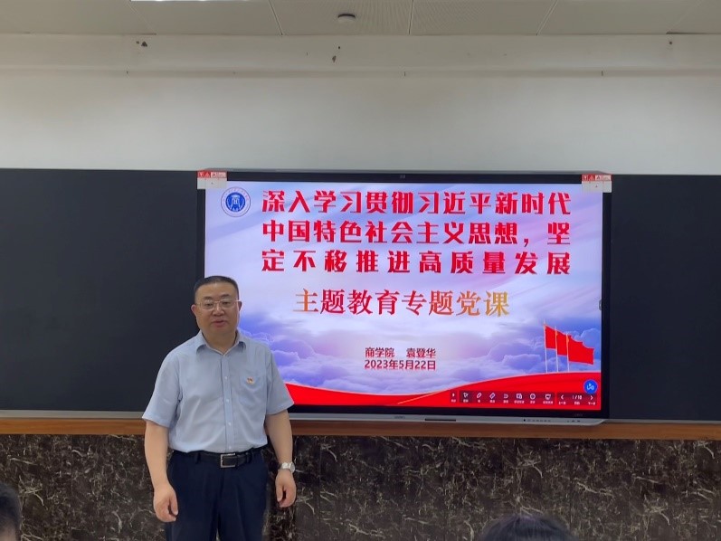• 5月22日下午,365英国上市公司副经理(主持工作)袁登华在白云山校区第九教学楼310会议室,以深入学习贯彻习近平新时代中国特色社会主义思想,坚定不移推进高质量发展为主题,讲授主题教育专题党课,MBA中心党支部党员、入党积极分子参加了此次学习。袁登华从学习党的二十大精神和推动MBA的高质量发展两个方面进行宣讲。